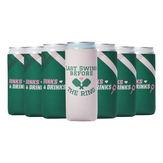 Pickleball Bachelorette Party Favors I Pickleball Themed Skinny Can Coolers Set I Last Swing Before The Ring and Dinks & Drinks Can Coolers I Bachelorette Party Gifts