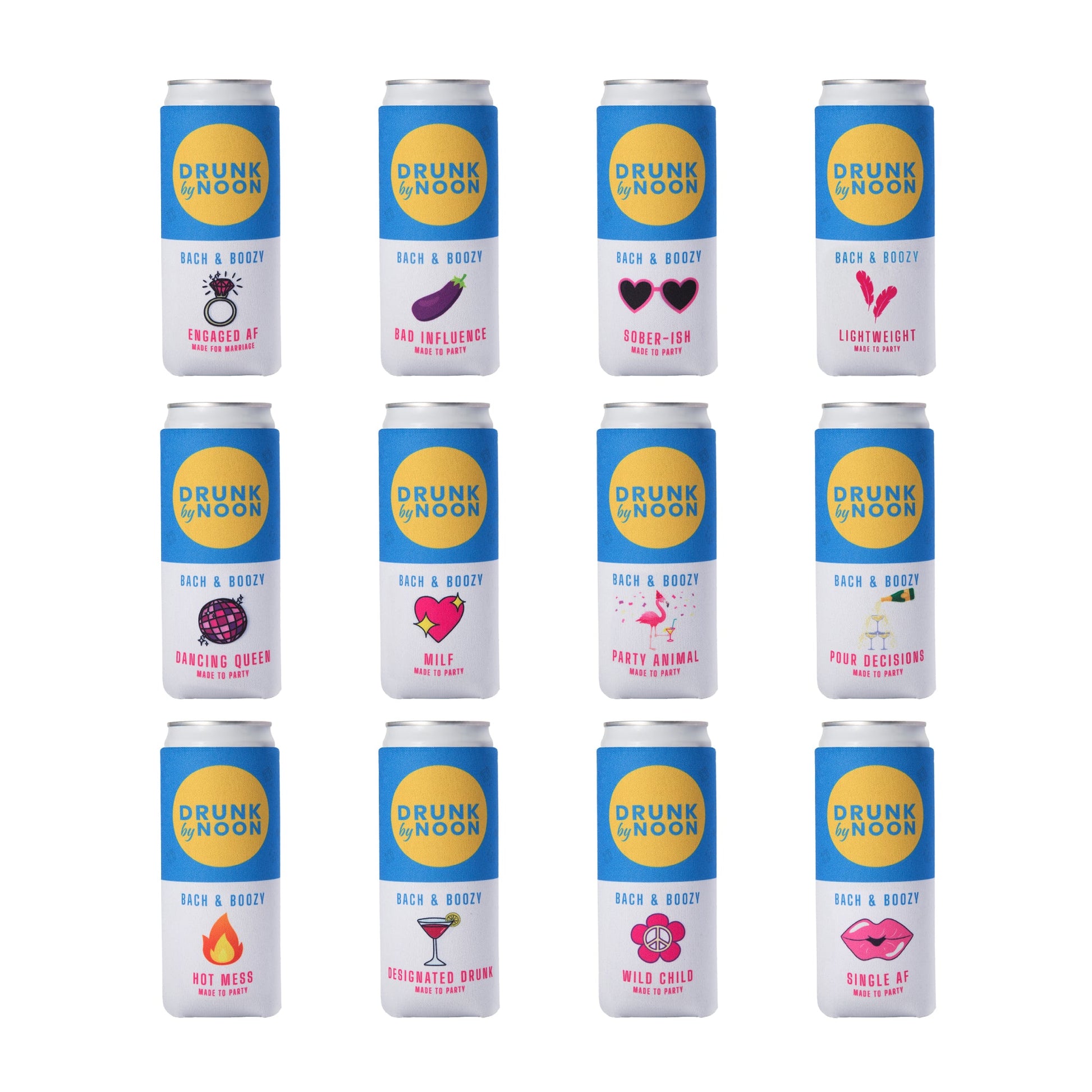 - PICK YOUR PACK - Available in a pack of 7 or 12, each coozie is unique just like your tribe. Whether it’s the bride’s “Engaged AF”, Designated Drunk, or the Party Animal, your whole crew will have their summer seltzers staying cool in their new bachelorette party favors.