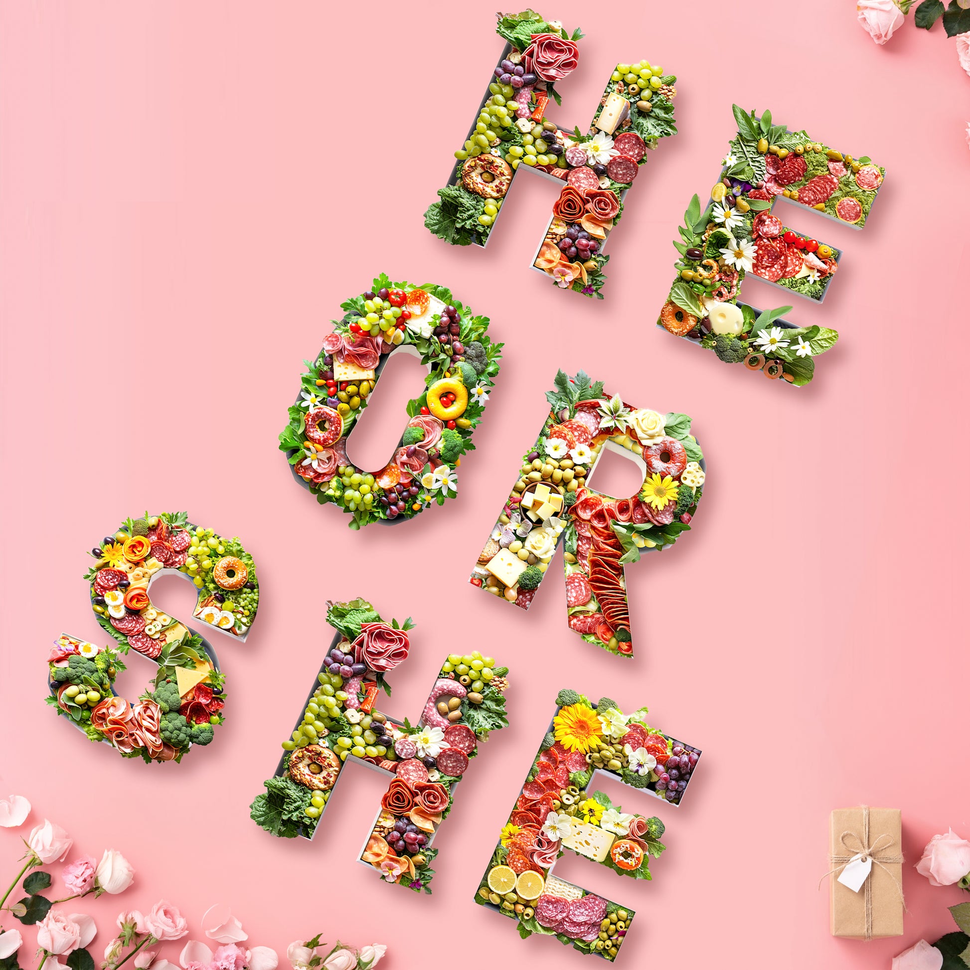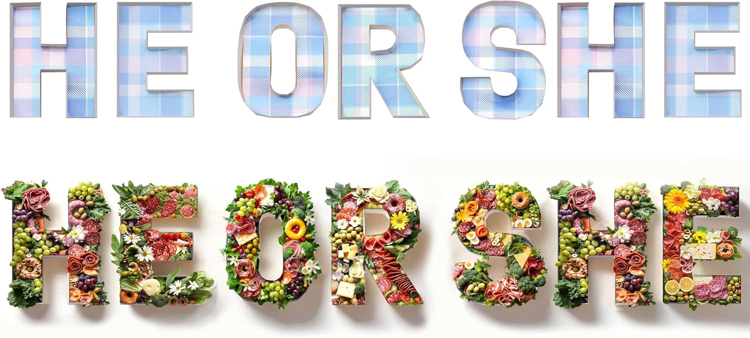 Pop Fizz Designs | Gender Reveal Charcuterie Fillable Letters | He or She